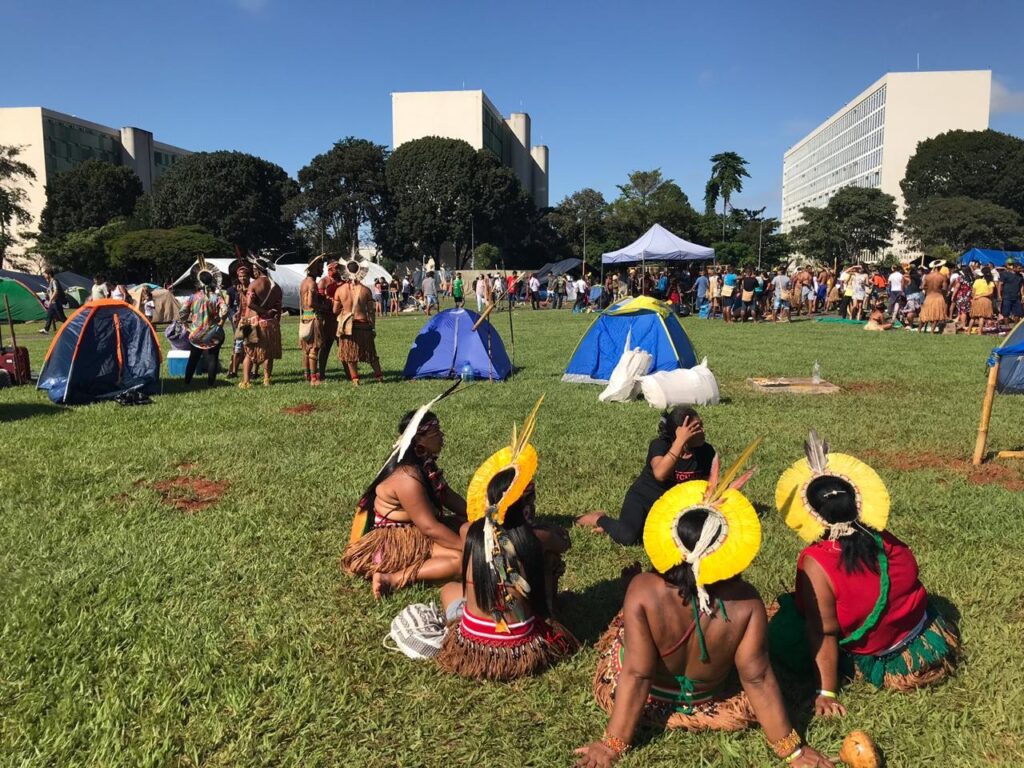 Durante a semana do acampamento, eles realizaram um ato pacífico, com música e dança, em frente à sede da Advocacia-geral da União (AGU), para cobrar a demarcação de terras pelo governo federal. Cerca de 2,5 mil pessoas participaram do ato.